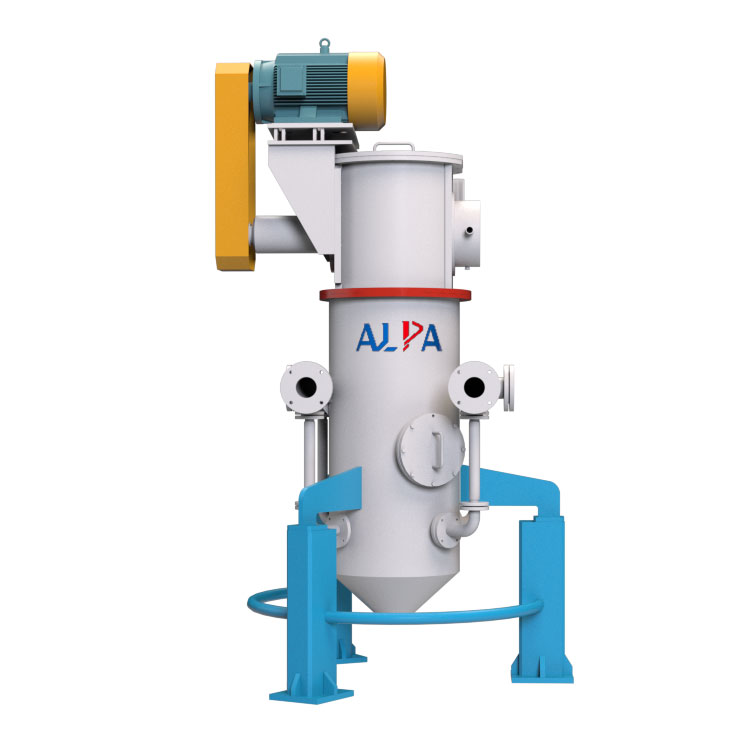 气流粉碎机、除尘器、引风机组成一整套粉碎系统。压缩空气经过滤干燥后,通过拉瓦尔喷嘴高速喷射入粉碎腔,在多股高压气流的交汇点处物料被反复碰撞、磨擦、剪切而粉碎,粉碎后的物料在风机抽力作用下随上升气流运动至分级区,在高速旋转的分级涡轮产生的强大离心力作用下,使粗细物料分离,符合粒度要求的细颗粒通过分级轮进入旋风分离器和除尘器收集,粗颗粒下降至粉碎区继续粉碎。